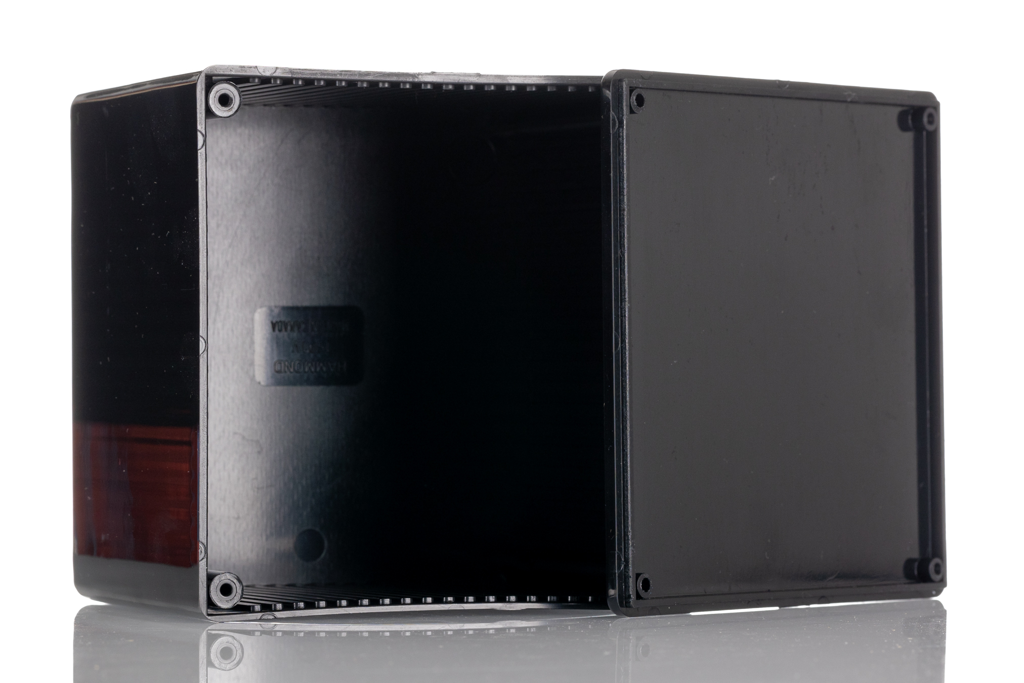This is Case; Polystyrene Plastic; 4.7 in. L x 4.7 in. W; Philips Head; Black; 0.16 in. manufactured by Hammond. The manufacturer part number is 1591VSBK. Its RAL code is ral 9005 . Flange Options - no. The typical product's weight is 200g. It is IP rated with ip54. Its external length includes 119 mm. The product 1591, is a highly preferred choice for users. It has a decent black colour. The product's body is nicely designed from abs materials. It features 1591 range. The lid has a classical black colour. Features 119 x 119 x 89mm external caliber. While its external height is 89 mm. The product is 119 mm wide. It has a transparent door no .