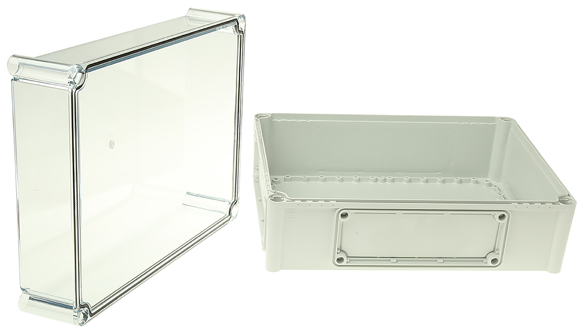 This is EK Polycarbonate Enclosure IP66 IP67 Flanged 380 x 280 x 180mm manufactured by Fibox. The manufacturer part number is EKPE 180 T + EKPVT. Flange Options - yes. It is IP rated with ip66, ip67. Shielding Options no. The product ek, is a highly preferred choice for users. It has a decent grey colour. Its external length includes 380 mm. The product's body is nicely designed from polycarbonate materials. The lid has a classical transparent colour. Features 380 x 280 x 180mm external caliber. While its external height is 180 mm. The product is 280 mm wide.