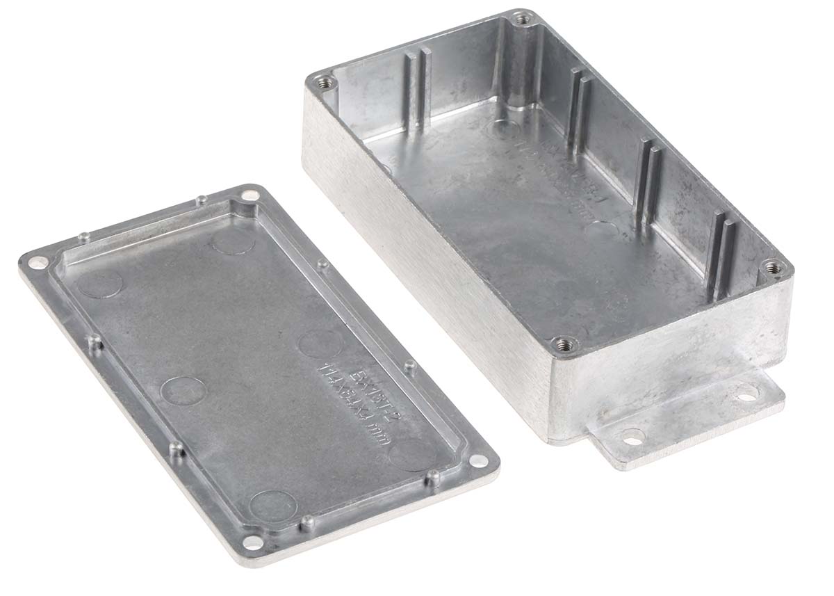 This is Aluminium Enclosure Shielded Flanged 139.7 x 63.8 x 30mm manufactured by RS Pro. The manufacturer part number is 517-3715. Flange Options - yes. Shielding Options yes. It has a decent silver colour. Its external length includes 139.7 mm. The product's body is nicely designed from die cast aluminium materials. The lid has a classical silver colour. Features 139.7 x 63.8 x 30mm external caliber. While its external height is 30 mm. The product is 63.8 mm wide.
