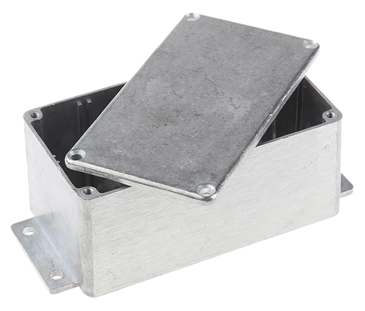 This is Aluminium Enclosure IP65 Shielded Flanged 139.6 x 63.8 x 55mm manufactured by RS Pro. The manufacturer part number is 517-4099. Flange Options - yes. Its gasket is made using neoprene material . It is IP rated with ip66. Shielding Options yes. It has a decent silver colour. Its external length includes 139.6 mm. The product's body is nicely designed from die cast aluminium materials. The lid has a classical silver colour. Features 139.6 x 63.8 x 55mm external caliber. While its external height is 55 mm. The product is 63.8 mm wide.