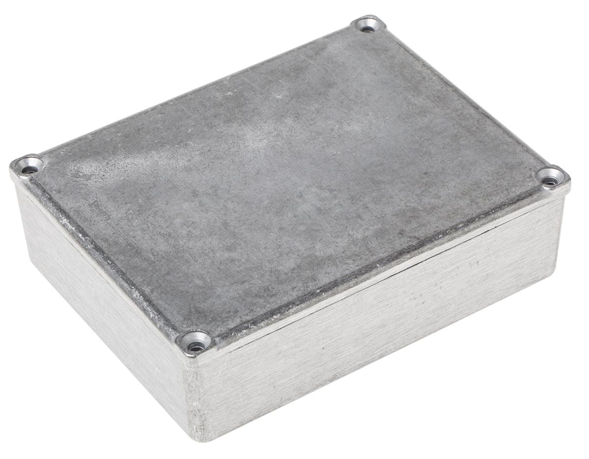 This is Alumimium Enclosure 119 x 93.5 x 34mm manufactured by RS Pro. The manufacturer part number is 146-5297. Its external length includes 119 mm. It has a decent grey colour. The product's body is nicely designed from die cast aluminium materials. The lid has a classical grey colour. Features 119 x 93.5 x 34mm external caliber. While its external height is 34 mm. The product is 93.5 mm wide.