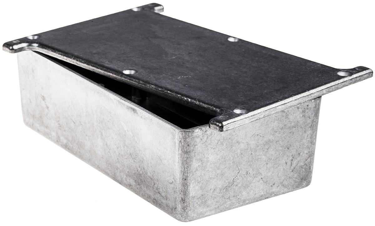 This is Alumimium Enclosure Flanged 152.4 x 82.5 x 50.8mm manufactured by RS Pro. The manufacturer part number is 146-5345. Flange Options - yes. Its external length includes 152.4 mm. It has a decent silver colour. The product's body is nicely designed from die cast aluminium materials. The lid has a classical black colour. Features 152.4 x 82.5 x 50.8mm external caliber. While its external height is 50.8 mm. The product is 82.5 mm wide.