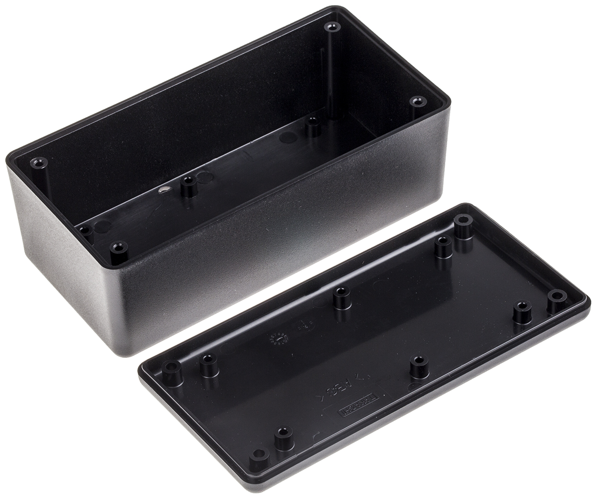 This is ABS Enclosure 130 x 65 x 50.1mm manufactured by RS Pro. The manufacturer part number is 153-3204. Flange Options - no. The typical product's weight is 100g. Shielding Options no. It has a decent black colour. Its external length includes 130mm. The product's body is nicely designed from abs materials. The lid has a classical black colour. It has a transparent door no . Features 130 x 65 x 50.1mm external caliber. While its external height is 50.1mm. The product is 65mm wide. Additionally, it is explosion proof no .