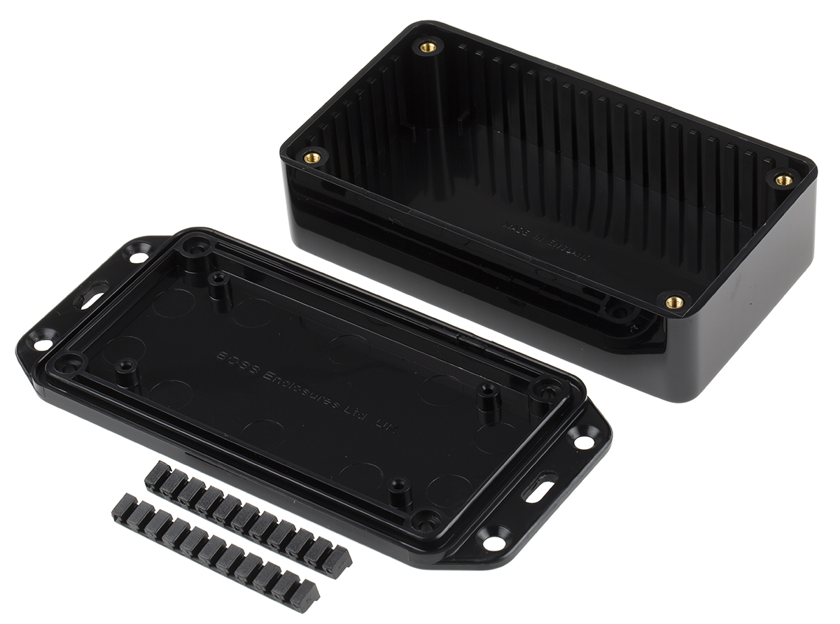 This is ABS Enclosure IP65 Flanged 135.8 x 64.55 x 31.5mm manufactured by RS Pro. The manufacturer part number is 153-3670. Its RAL code is ral 9005 . Flange Options - no. The typical product's weight is 71g. It is IP rated with ip54. Shielding Options no. It has a decent black colour. Its external length includes 135.8mm. The product's body is nicely designed from abs materials. The lid has a classical black colour. It has a transparent door no . Features 135.8 x 64.55 x 31.5mm external caliber. While its external height is 31.5mm. The product is 64.6mm wide. Additionally, it is explosion proof no .