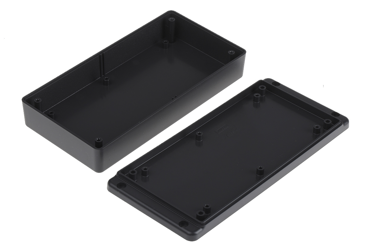 This is ABS Enclosure Flanged 190 x 86 x 35mm manufactured by RS Pro. The manufacturer part number is 153-3699. Flange Options - yes. The typical product's weight is 150g. Shielding Options no. It has a decent grey colour. Its external length includes 190mm. The product's body is nicely designed from abs materials. The lid has a classical grey colour. It has a transparent door no . Features 190 x 86 x 35mm external caliber. While its external height is 35mm. The product is 86mm wide. Additionally, it is explosion proof no .