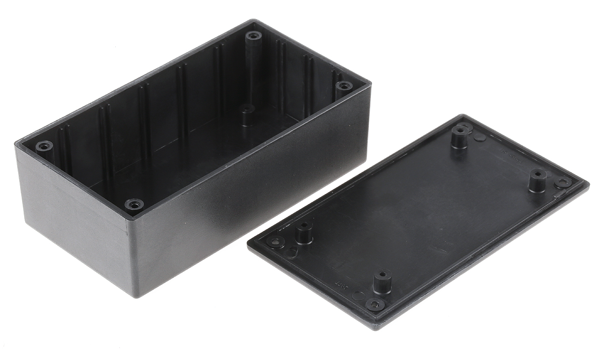 This is ABS Enclosure 120.9 x 65.53 x 40.89mm manufactured by RS Pro. The manufacturer part number is 237-4353. Flange Options - no. Shielding Options no. It has a decent black colour. Its external length includes 120.9 mm. The product's body is nicely designed from abs materials. The lid has a classical black colour. Features 120.9 x 65.53 x 40.89mm external caliber. While its external height is 40.9 mm. The product is 65.5 mm wide.