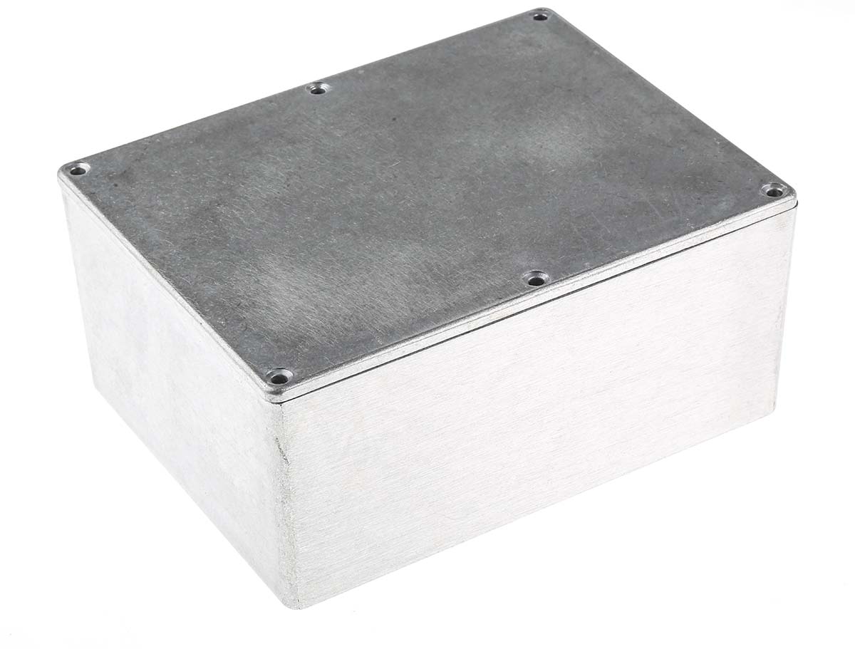 This is Aluminium Enclosure IP66 Shielded 165.8 x 127.3 x 76.3mm manufactured by RS Pro. The manufacturer part number is 517-3490. Flange Options - no. Its gasket is made using neoprene material . It is IP rated with ip66. Shielding Options yes. It has a decent silver colour. Its external length includes 165.8 mm. The product's body is nicely designed from die cast aluminium materials. The lid has a classical silver colour. While its external height is 76.3 mm. The product is 127.3 mm wide. Features 165.8 x 127.3 x 76.3mm external caliber.