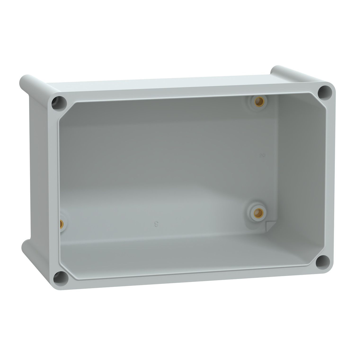 This is Thalassa Polyester Enclosure IP65 180 x 270 x 180mm manufactured by Schneider Electric. The manufacturer part number is NSYPLS1827G. Its RAL code is ral 7035 . Better World Verification Options - green premium. Is it a better world product? yes. It is IP rated with ip65. Shielding Options no. The product panelset, is a highly preferred choice for users. It has a decent grey colour. The product's body is nicely designed from fibreglass reinforced polyester materials. It features thalassa range. The lid has a classical transparent colour. Features 180 x 270 x 180mm external caliber. While its external height is 180 mm. The product is 270 mm wide. It has a standard ik09 IK rating .