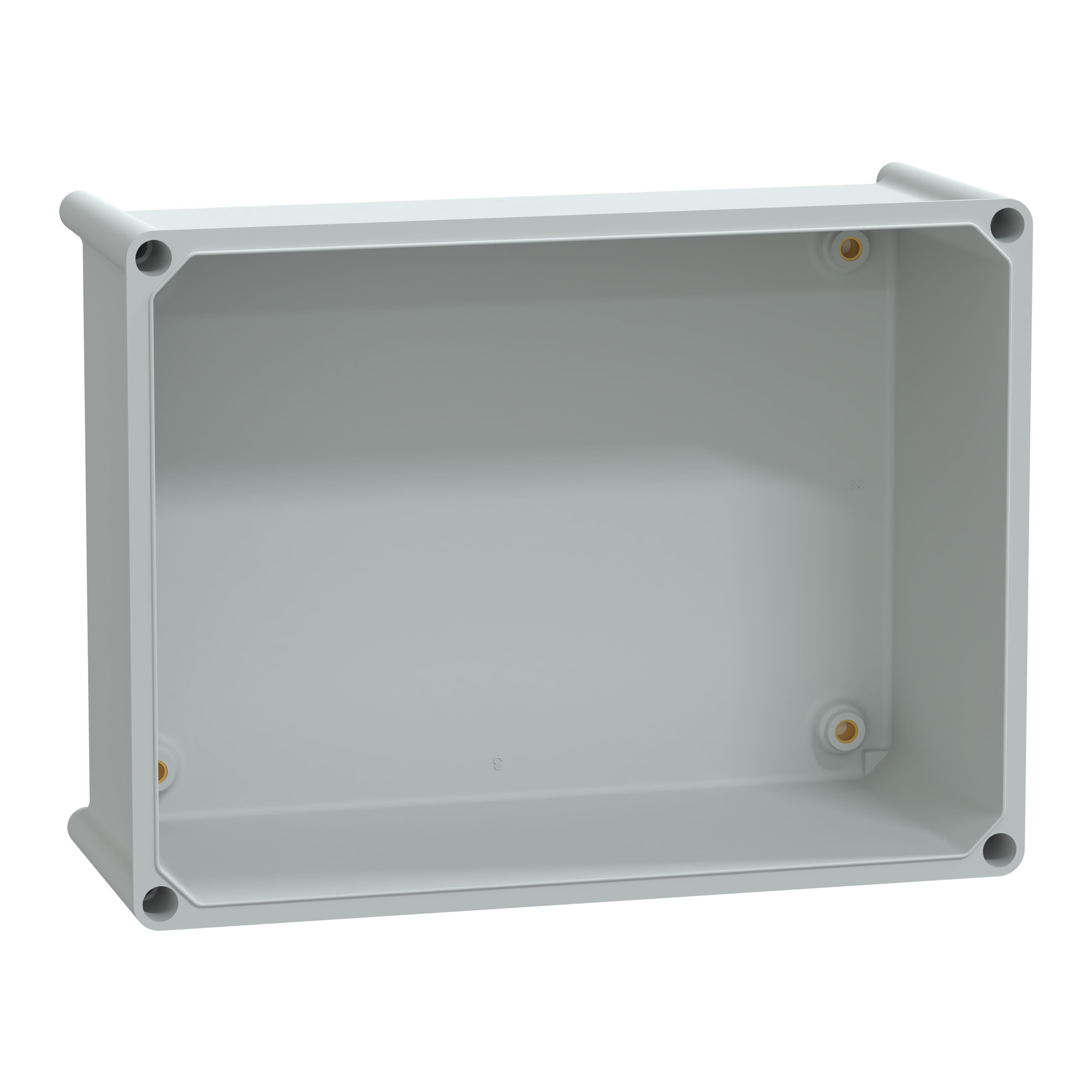 This is Thalassa Polyester Enclosure IP65 270 x 360 x 180mm manufactured by Schneider Electric. The manufacturer part number is NSYPLSP2736G. Its RAL code is ral 7035 . Better World Verification Options - green premium. Is it a better world product? yes. It is IP rated with ip65. Shielding Options no. The product panelset, is a highly preferred choice for users. It has a decent grey colour. The product's body is nicely designed from fibreglass reinforced polyester materials. It features thalassa range. The lid has a classical grey colour. Features 270 x 360 x 180mm external caliber. While its external height is 270 mm. The product is 360 mm wide. It has a standard ik09 IK rating .