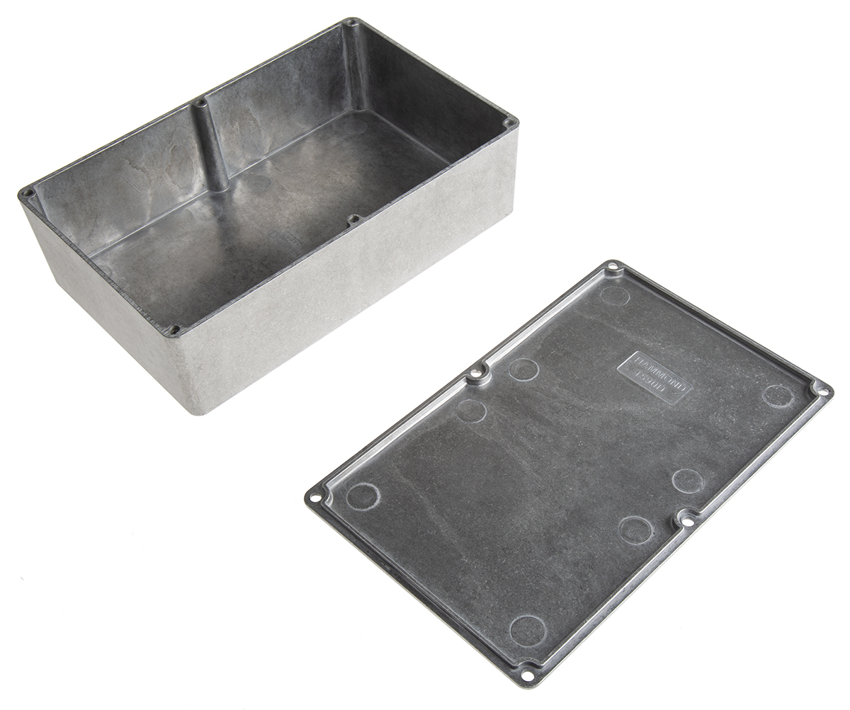This is 1590 Aluminium Enclosure Shielded 187.75 x 119.5 x 56mm manufactured by Hammond. The manufacturer part number is 1590D. Flange Options - no. The typical product's weight is 497g. It is IP rated with ip54. Shielding Options yes. The product 1590, is a highly preferred choice for users. It has a decent natural colour. The product's body is nicely designed from die cast aluminium materials. Its external length includes 187.8 mm. It features 1590 range. The lid has a classical natural colour. Features 187.75 x 119.5 x 52mm external caliber. While its external height is 52 mm. It contains 0 knockouts . The product is 119.5 mm wide. Additionally, it is explosion proof no . It has a transparent door no .