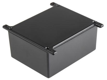 This is Aluminium Enclosure Flanged 119 x 93.5 x 56.5mm manufactured by RS Pro. The manufacturer part number is 146-5366. Flange Options - yes. Its external length includes 119 mm. It has a decent black colour. The product's body is nicely designed from die cast aluminium materials. The lid has a classical black colour. Features 119 x 93.5 x 56.5mm external caliber. While its external height is 56.5 mm. The product is 93.5 mm wide.