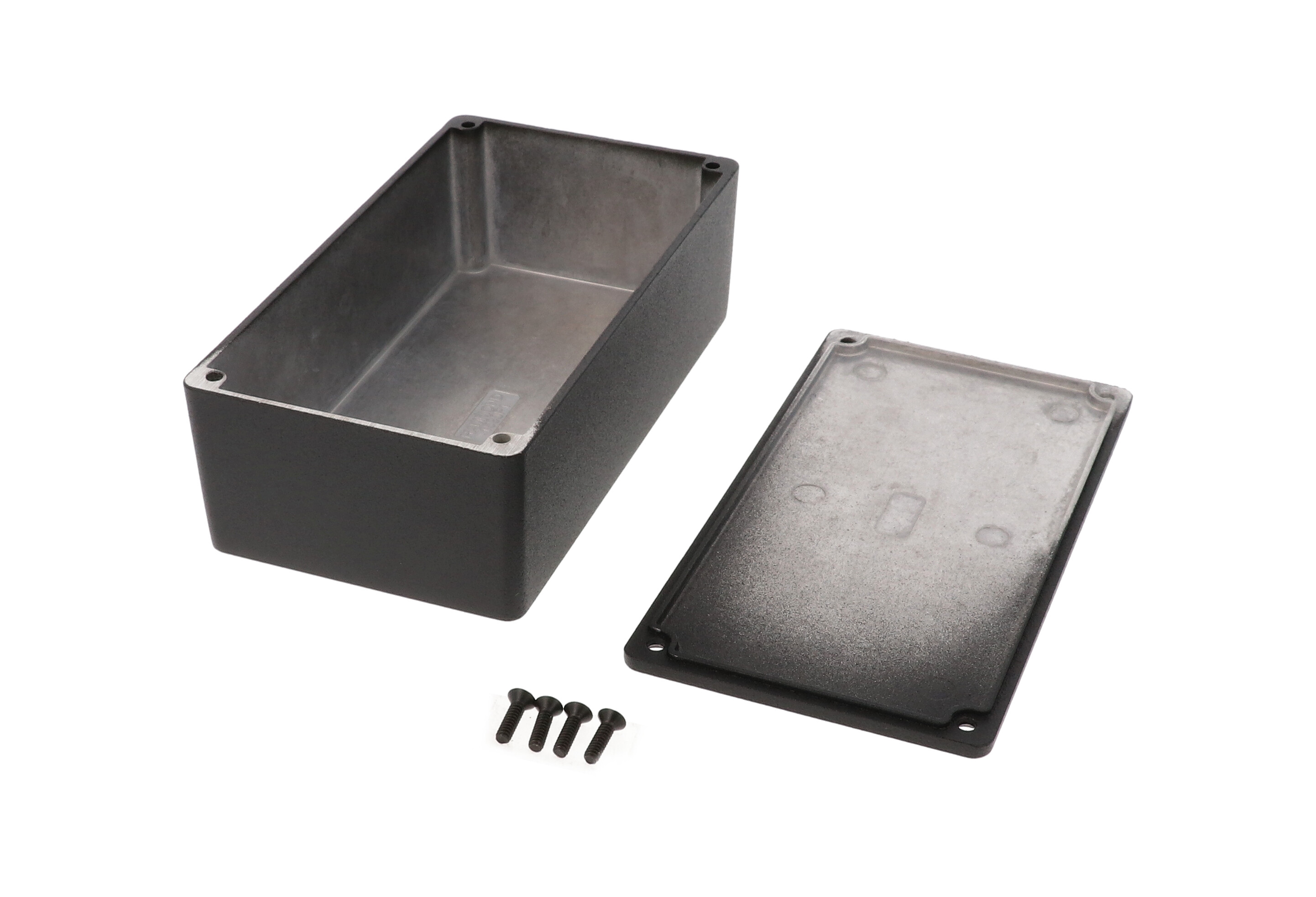 This is 1590 Aluminium Enclosure IP54 Shielded 153 x 82 x 46mm manufactured by Hammond. The manufacturer part number is 1590P1BK. Its RAL code is ral 9005 . Flange Options - no. The typical product's weight is 341g. It is IP rated with ip54. Shielding Options yes. The product 1590, is a highly preferred choice for users. It has a decent black colour. The product's body is nicely designed from die cast aluminium materials. Its external length includes 153 mm. It features 1590 range. The lid has a classical black colour. Features 153 x 83 x 50mm external caliber. While its external height is 50 mm. It contains 0 knockouts . The product is 83 mm wide. Additionally, it is explosion proof no . It has a transparent door no .