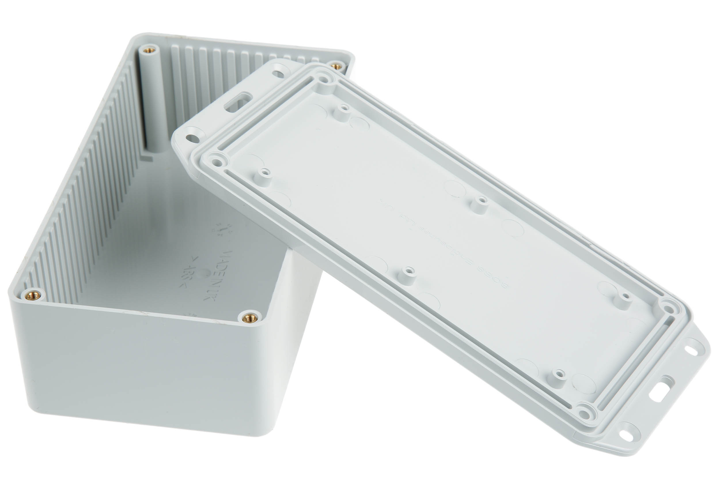 This is ABS Enclosure IP65 Flanged 135.8 x 64.55 x 31.5mm manufactured by RS Pro. The manufacturer part number is 153-3695. Its RAL code is ral 7047 . Flange Options - yes. The typical product's weight is 71g. It is IP rated with ip54. Shielding Options no. It has a decent grey colour. Its external length includes 135.8mm. The product's body is nicely designed from abs materials. The lid has a classical grey colour. Features 135.8 x 64.55 x 31.5mm external caliber. While its external height is 31.5mm. The product is 64.6mm wide. Additionally, it is explosion proof no . It has a transparent door no .