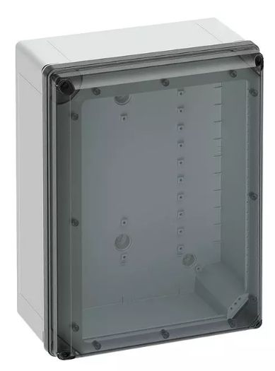 Empty enclosure - Industrial Quality -, suitable for installation in harsh environments and unprotected exterior areas, Base: glass fibre reinforced polycarbonate, Grey, similar to RAL 7035, Cover: Polycarbonate