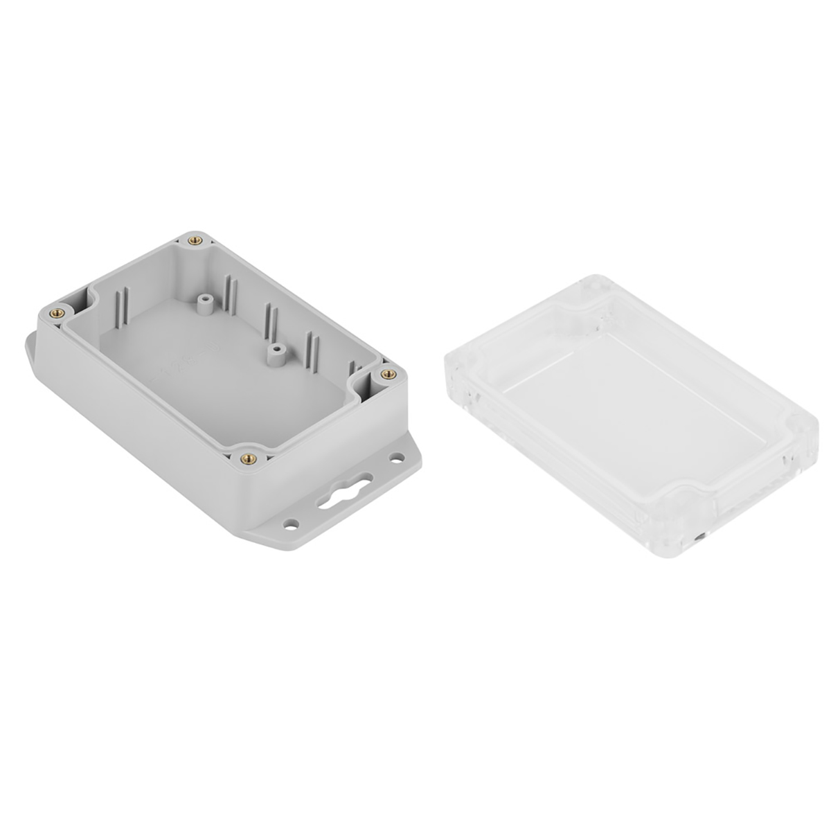 This is ABS Polycarbonate Enclosure IP68 Flanged 105 x 70 x 40mm Light Grey manufactured by RS PRO. The manufacturer part number is 192-0727. Flange Options - yes. Its gasket is made using silicone material . It is IP rated with ip68. Its external length includes 131.3mm. It has a decent grey colour. The product's body is nicely designed from abs, polycarbonate materials. The lid has a classical transparent colour. Features 105 x 70 x 40mm external caliber. While its external height is 40mm. The product is 71.3mm wide. It has a standard ik07 IK rating .