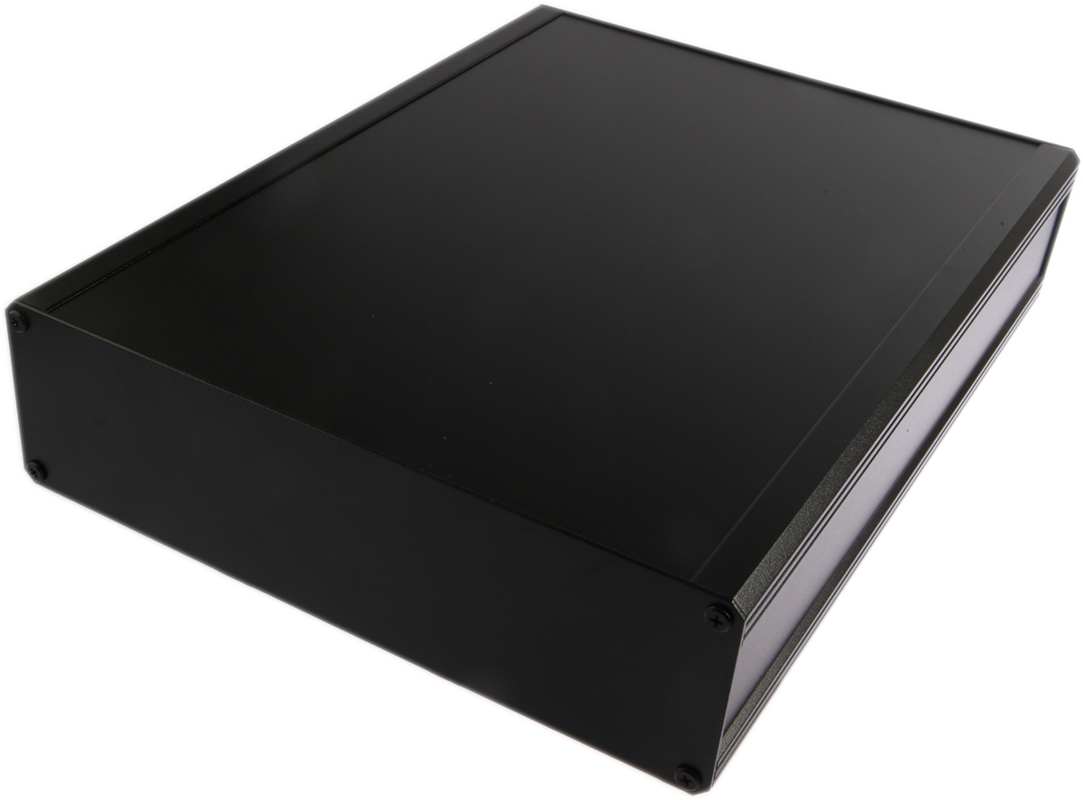 This is Extruded Aluminium Heat Sink Case IP40 400 x 300 x 86mm Black manufactured by RS PRO. The manufacturer part number is 188-1269. Flange Options - no. The typical product's weight is 1890g. It is IP rated with ip40. Shielding Options no. The product eab, is a highly preferred choice for users. It has a decent black colour. Its external length includes 400 mm. The product's body is nicely designed from extruded aluminium materials. The lid has a classical black colour. Features 400 x 300 x 86mm external caliber. While its external height is 86 mm. The product is 300 mm wide.