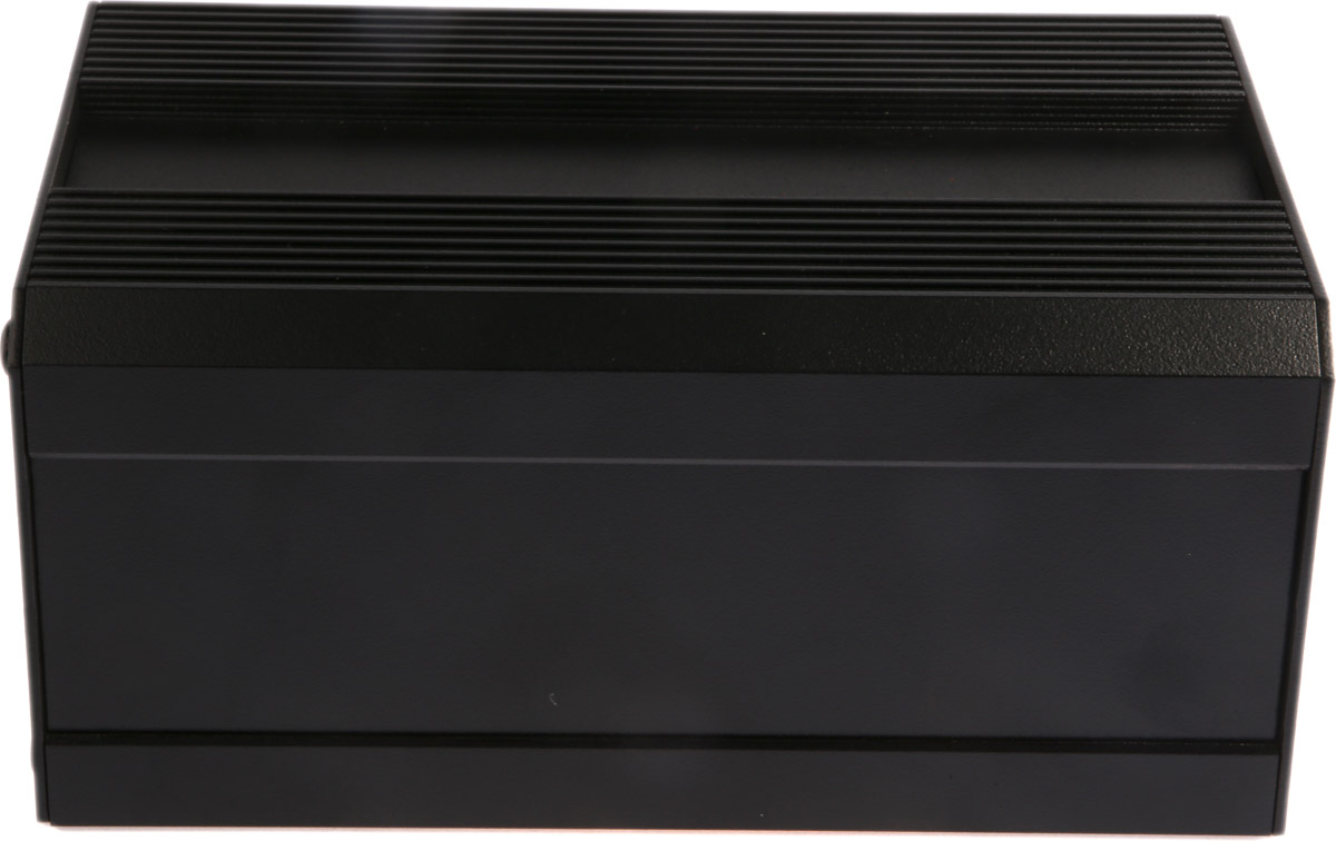 This is Extruded Aluminium Heat Sink Case IP40 200 x 100 x 130mm Black manufactured by RS PRO. The manufacturer part number is 188-1270. Flange Options - no. The typical product's weight is 950g. It is IP rated with ip40. Shielding Options no. The product eab, is a highly preferred choice for users. It has a decent black colour. Its external length includes 200 mm. The product's body is nicely designed from extruded aluminium materials. The lid has a classical black colour. Features 200 x 100 x 130mm external caliber. While its external height is 130 mm. The product is 100 mm wide.