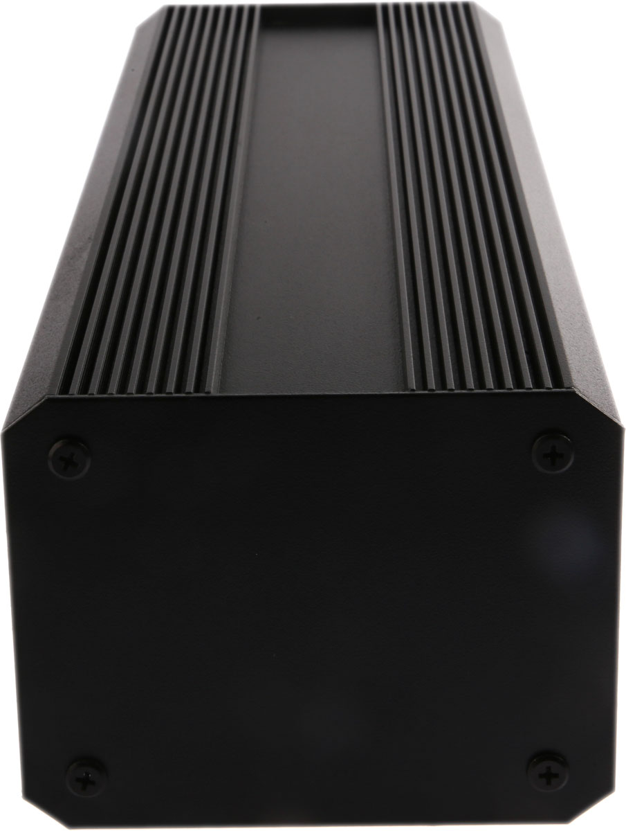 This is Extruded Aluminium Heat Sink Case IP40 400 x 100 x 130mm Black manufactured by RS PRO. The manufacturer part number is 188-1272. Flange Options - no. The typical product's weight is 1700g. It is IP rated with ip40. Shielding Options no. The product eab, is a highly preferred choice for users. It has a decent black colour. Its external length includes 400 mm. The product's body is nicely designed from extruded aluminium materials. The lid has a classical black colour. While its external height is 130 mm. The product is 100 mm wide. Features 400 x 100 x 130mm external caliber.
