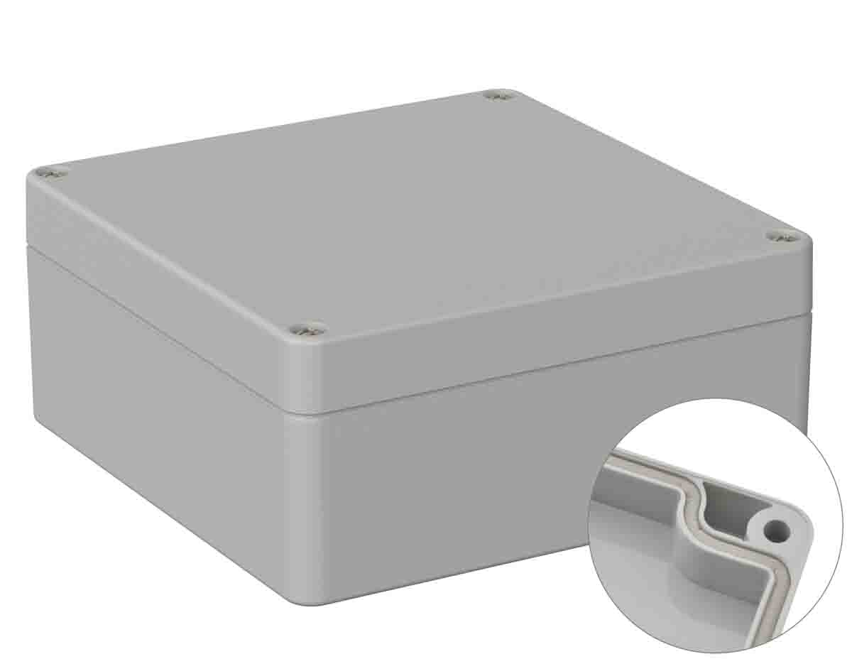 This is ABS General Purpose Enclosure IP66 Shielded Flanged 120 x 122 x 55mm manufactured by RS PRO. The manufacturer part number is 201-0177. Its RAL code is ral 7035 . Flange Options - no. Its gasket is made using neoprene material . The typical product's weight is 214g. It is IP rated with ip66. Shielding Options no. It has a decent grey colour. It has a transparent door no . Its external length includes 122 mm. The product's body is nicely designed from abs materials. The lid has a classical grey colour. It has a standard ik07 IK rating . Features 120 x 122 x 55mm external caliber. While its external height is 55 mm. The product is 120 mm wide. Additionally, it is explosion proof no .