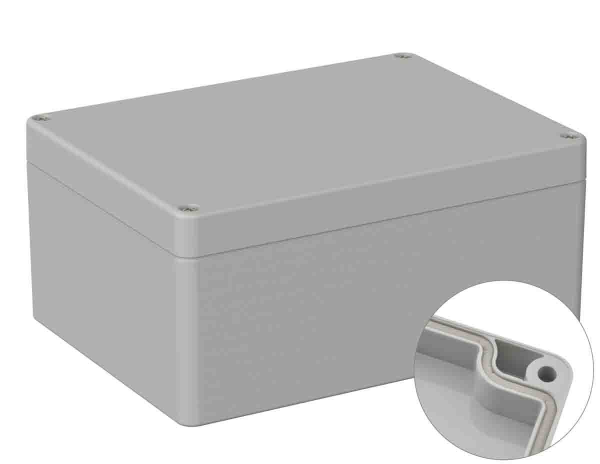 This is ABS General Purpose Enclosure IP66 Shielded Flanged 120 x 160 x 75mm manufactured by RS PRO. The manufacturer part number is 201-0192. Its RAL code is ral 7035 . Flange Options - no. Its gasket is made using neoprene material . The typical product's weight is 295g. It is IP rated with ip66. Shielding Options no. It has a decent grey colour. It has a transparent door no . Its external length includes 160 mm. The product's body is nicely designed from abs materials. The lid has a classical grey colour. It has a standard ik07 IK rating . Features 120 x 160 x 75mm external caliber. While its external height is 75 mm. The product is 120 mm wide. Additionally, it is explosion proof no .