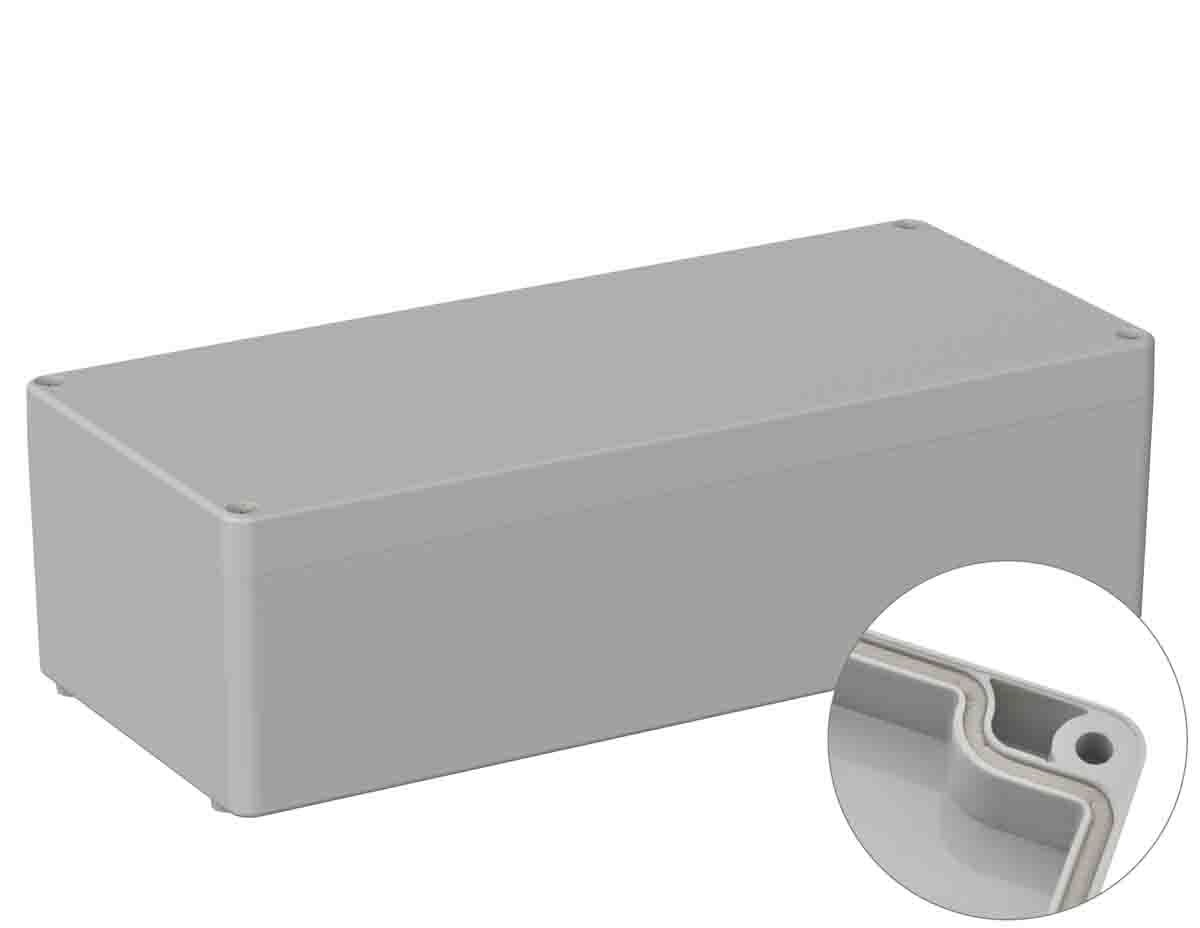This is ABS General Purpose Enclosure IP65 Shielded Flanged 150 x 340 x 100mm manufactured by RS PRO. The manufacturer part number is 201-0199. Its RAL code is ral 7035 . Flange Options - no. Its gasket is made using neoprene material . The typical product's weight is 915g. It is IP rated with ip65. Shielding Options no. It has a decent grey colour. It has a transparent door no . Its external length includes 340 mm. The product's body is nicely designed from abs materials. The lid has a classical grey colour. It has a standard ik07 IK rating . Features 150 x 340 x 100mm external caliber. While its external height is 100 mm. The product is 150 mm wide. Additionally, it is explosion proof no .