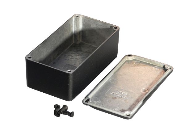 This is 1590 Die Cast Aluminium Alloy Enclosure IP56 Shielded 112 x 60 x 42mm manufactured by Hammond. The manufacturer part number is 1590BSBK. Flange Options - no. It is IP rated with ip54. Shielding Options yes. The product 1590, is a highly preferred choice for users. The product's body is nicely designed from die cast aluminium alloy materials. Its external length includes 112 mm. It features 1590 range. Features 112 x 60 x 42mm external caliber. While its external height is 60 mm. The product is 42 mm wide.