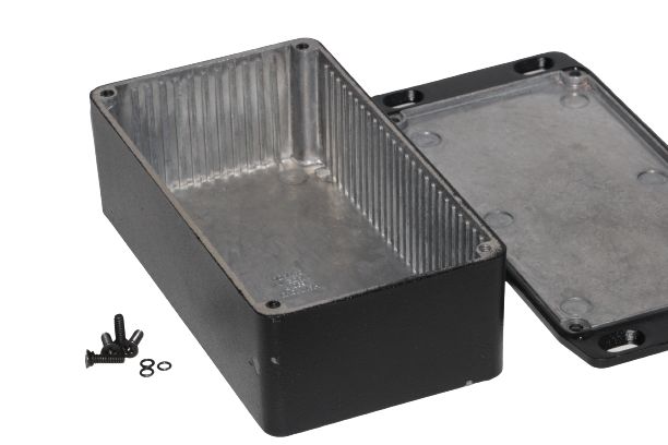 This is 1590-RIBBED Die Cast Aluminium Alloy Enclosure IP65 Shielded Flanged 153 x 82 x 46mm manufactured by Hammond. The manufacturer part number is 1590WPFLBK. Flange Options - yes. Its gasket is made using silicone material . It is IP rated with ip65. Shielding Options yes. The product 1590-ribbed, is a highly preferred choice for users. The product's body is nicely designed from die cast aluminium alloy materials. Its external length includes 153 mm. It features 1590-ribbed range. Features 153 x 82 x 46mm external caliber. While its external height is 46 mm. The product is 82 mm wide.