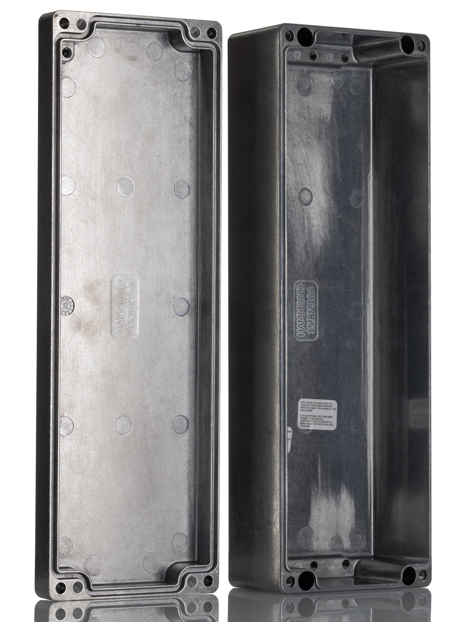 This is 1590Z Die Cast Aluminium Alloy Enclosure IP68 361 x 120 x 60mm manufactured by Hammond. The manufacturer part number is 1590Z164. Flange Options - no. Its gasket is made using silicone material . The typical product's weight is 1.9kg. It is IP rated with ip68. Its external length includes 361 mm. The product 1590z, is a highly preferred choice for users. It has a decent clear colour. The product's body is nicely designed from die cast aluminium alloy materials. It features 1590z range. Features 361 x 120 x 80mm external caliber. It has a standard ik08 IK rating . While its external height is 80 mm. The product is 120 mm wide.