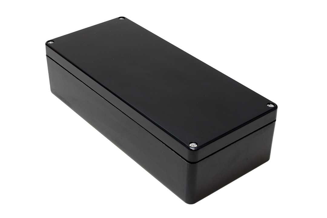 This is 1590ZGRPBK Fibreglass Reinforced Polyester Enclosure IP66 361 x 160 x 90mm manufactured by Hammond. The manufacturer part number is 1590ZGRP163BK. Flange Options - no. Its gasket is made using silicone material . It is IP rated with ip66. Its external length includes 361 mm. The product 1590zgrpbk, is a highly preferred choice for users. It has a decent black colour. The product's body is nicely designed from fibreglass reinforced polyester materials. It features 1590zgrpbk range. Features 361 x 160 x 90mm external caliber. While its external height is 90 mm. The product is 160 mm wide.
