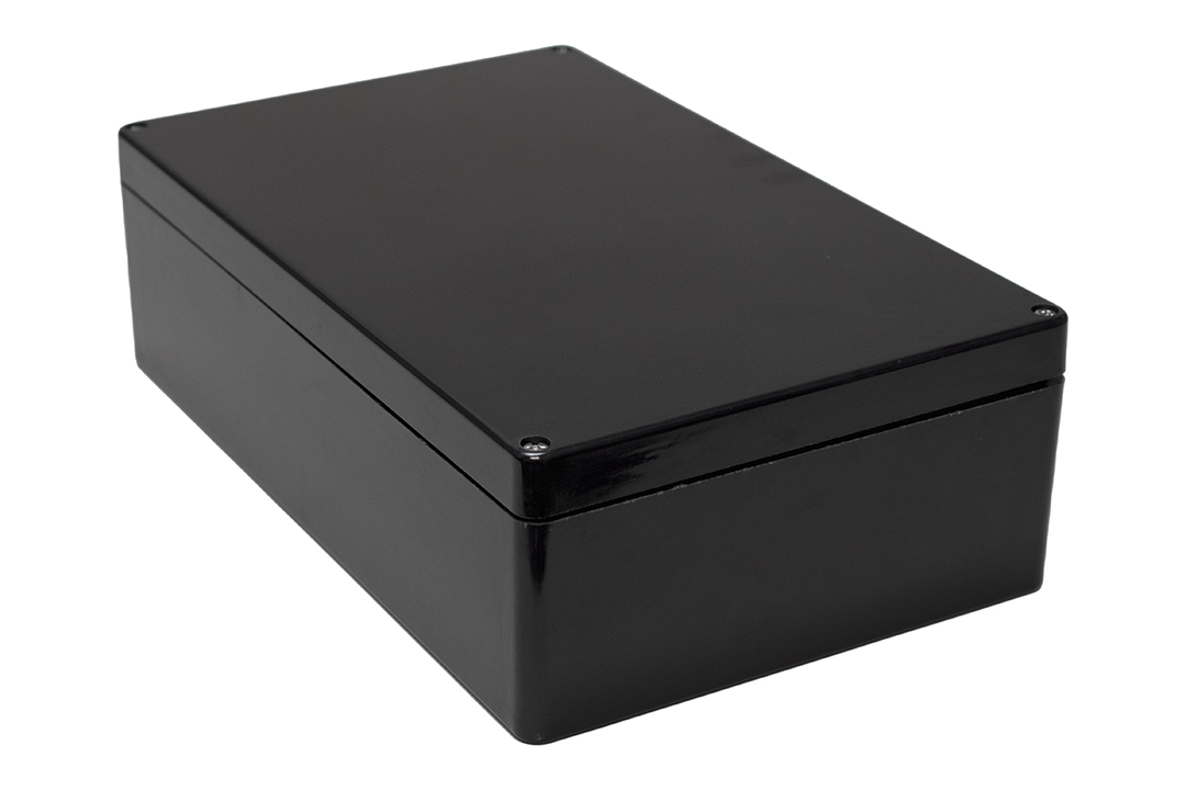 This is 1590ZGRPBK Fibreglass Reinforced Polyester Enclosure IP66 400 x 250 x 120mm manufactured by Hammond. The manufacturer part number is 1590ZGRP243BK. Flange Options - no. Its gasket is made using silicone material . It is IP rated with ip66. Its external length includes 400 mm. The product 1590zgrpbk, is a highly preferred choice for users. It has a decent black colour. The product's body is nicely designed from fibreglass reinforced polyester materials. It features 1590zgrpbk range. Features 400 x 250 x 120mm external caliber. While its external height is 120 mm. The product is 250 mm wide.