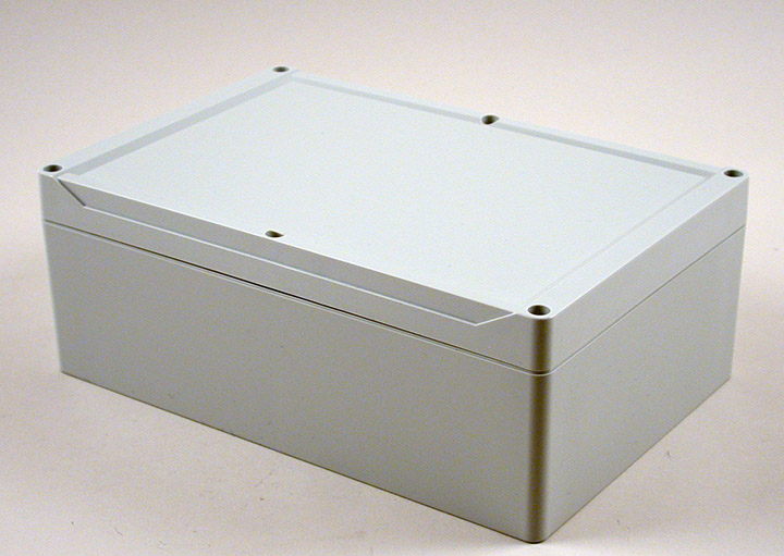 This is 1555 Polycarbonate Enclosure IP68 9.4 x 6.3 x 3.5in manufactured by Hammond. The manufacturer part number is 1555VA2GY. It is IP rated with ip68. Its external length includes 238.8 mm. The product 1555, is a highly preferred choice for users. The product's body is nicely designed from polycarbonate materials. It features 1555 range. Features 9.4 x 6.3 x 3.5in external caliber. While its external height is 88.9 mm. The product is 160 mm wide.