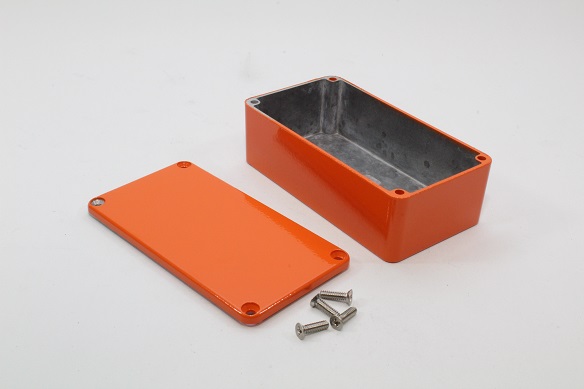 This is Die Cast Stomp Box - Orange manufactured by Hammond. The manufacturer part number is 1590B2OR. Flange Options - no. It is IP rated with ip54. Shielding Options yes. The product 1590, is a highly preferred choice for users. Its external length includes 113 mm. The product's body is nicely designed from die cast aluminium materials. Features 113 x 113 x 38mm external caliber. While its external height is 38 mm. The product is 61 mm wide.