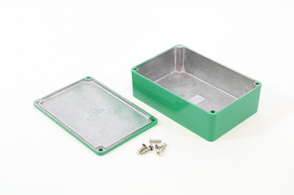 This is Die Cast Stomp Box - Green manufactured by Hammond. The manufacturer part number is 1590B3GR. Flange Options - no. It is IP rated with ip54. Shielding Options yes. The product 1590, is a highly preferred choice for users. Its external length includes 117 mm. The product's body is nicely designed from die cast aluminium materials. Features 117 x 117 x 38mm external caliber. While its external height is 38 mm. The product is 77 mm wide.