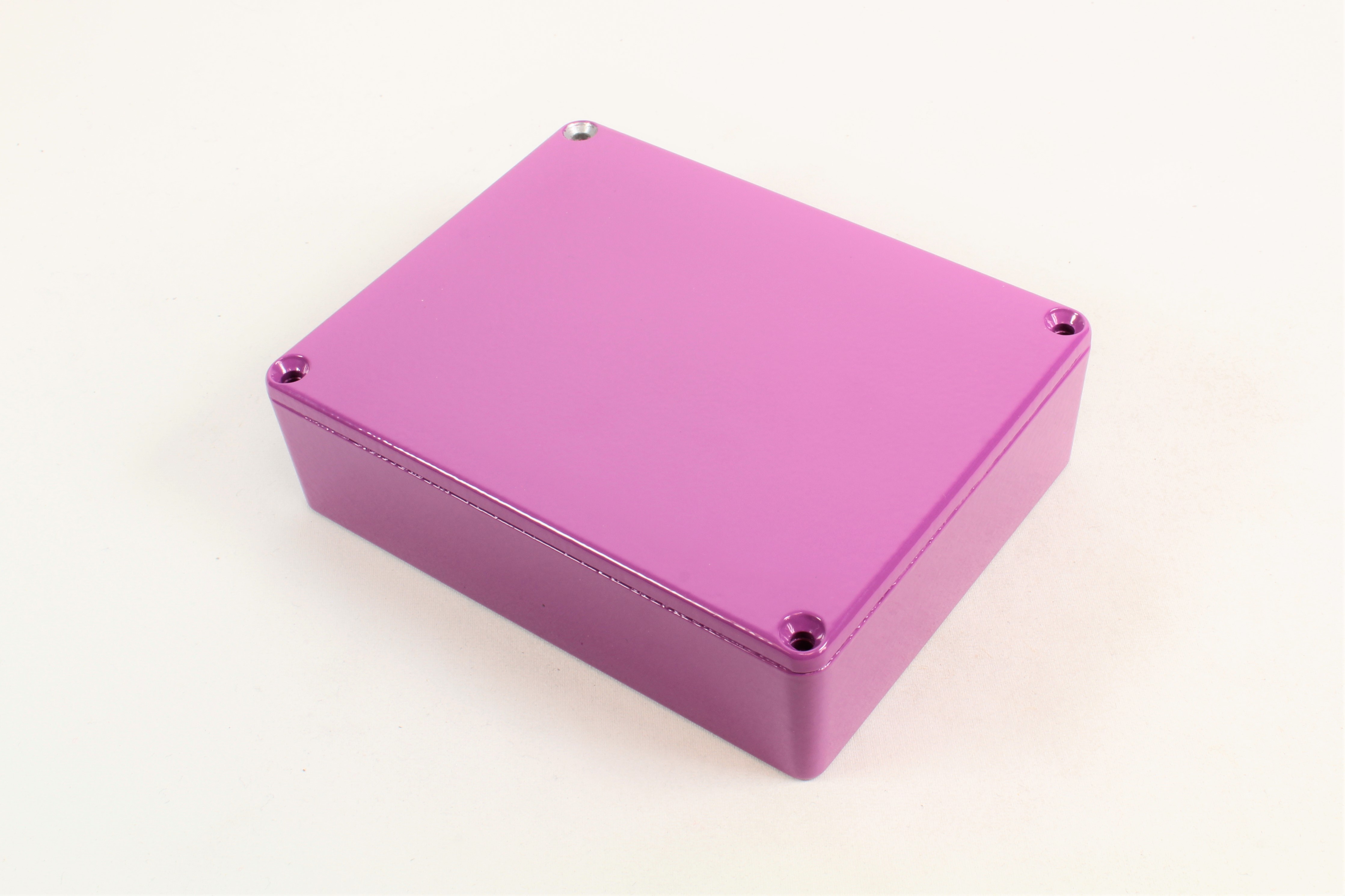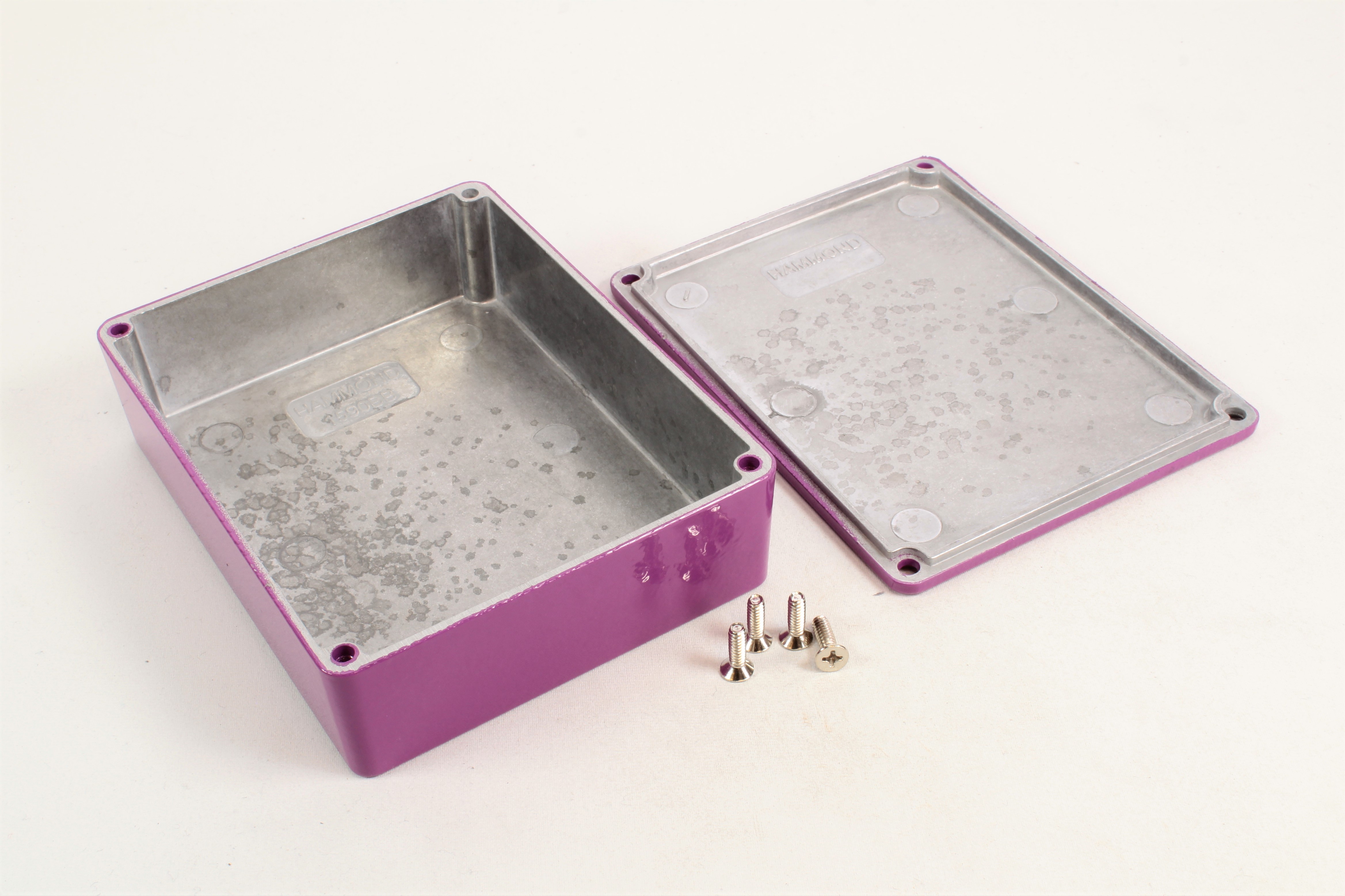 This is Die Cast Stomp Box - Purple manufactured by Hammond. The manufacturer part number is 1590BBPR. Flange Options - no. It is IP rated with ip54. Shielding Options yes. The product 1590, is a highly preferred choice for users. Its external length includes 120 mm. The product's body is nicely designed from die cast aluminium materials. Features 120 x 120 x 35mm external caliber. While its external height is 35 mm. The product is 94 mm wide.