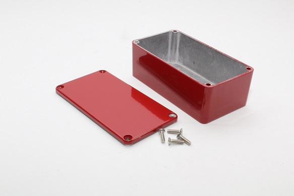 This is Die Cast Stomp Box - Red manufactured by Hammond. The manufacturer part number is 1590BSRD. Flange Options - no. It is IP rated with ip54. Shielding Options yes. The product 1590, is a highly preferred choice for users. Its external length includes 113 mm. The product's body is nicely designed from die cast aluminium materials. Features 113 x 113 x 42mm external caliber. While its external height is 42 mm. The product is 61 mm wide.