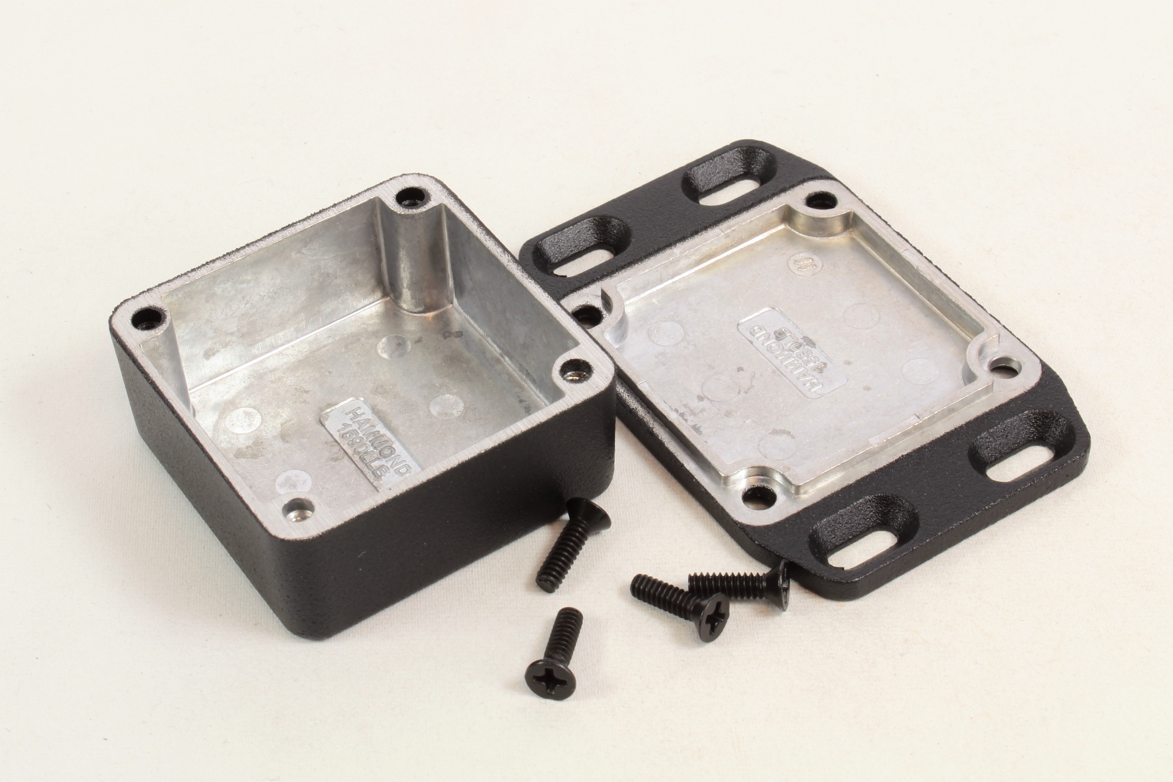 This is Diecast Enclosure Flanged Lid manufactured by Hammond. The manufacturer part number is 1590LLBFLBK. Flange Options - yes. It is IP rated with ip54. Shielding Options yes. The product 1590, is a highly preferred choice for users. Its external length includes 51 mm. The product's body is nicely designed from die cast aluminium materials. Features 51 x 51 x 25mm external caliber. While its external height is 25 mm. The product is 51 mm wide.