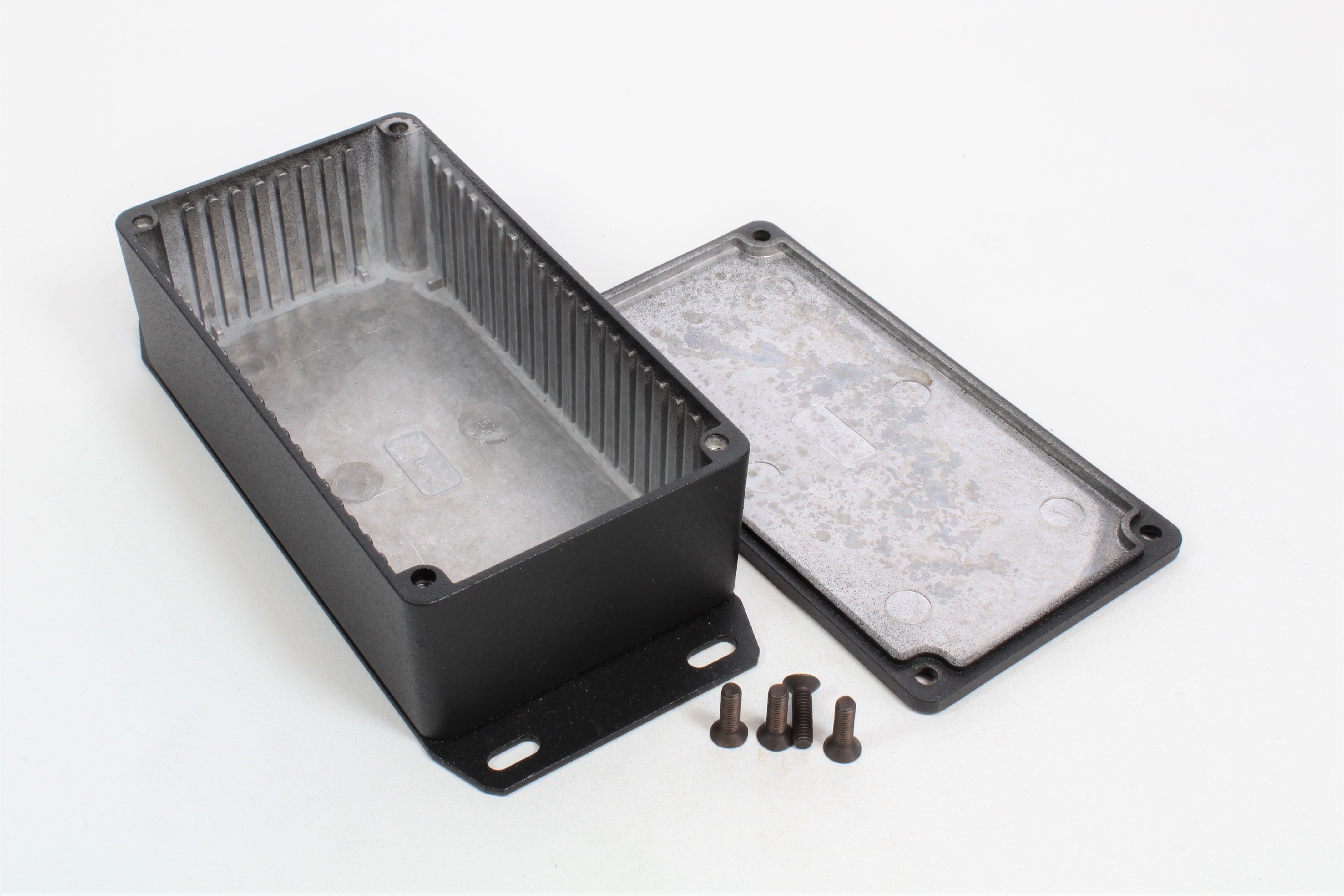 This is Diecast Enclosure with PCB Guides Flang manufactured by Hammond. The manufacturer part number is 1590NFBK. Flange Options - yes. It is IP rated with ip54. Shielding Options yes. The product 1590, is a highly preferred choice for users. Its external length includes 122 mm. The product's body is nicely designed from die cast aluminium materials. Features 122 x 122 x 40mm external caliber. While its external height is 40 mm. The product is 66 mm wide.