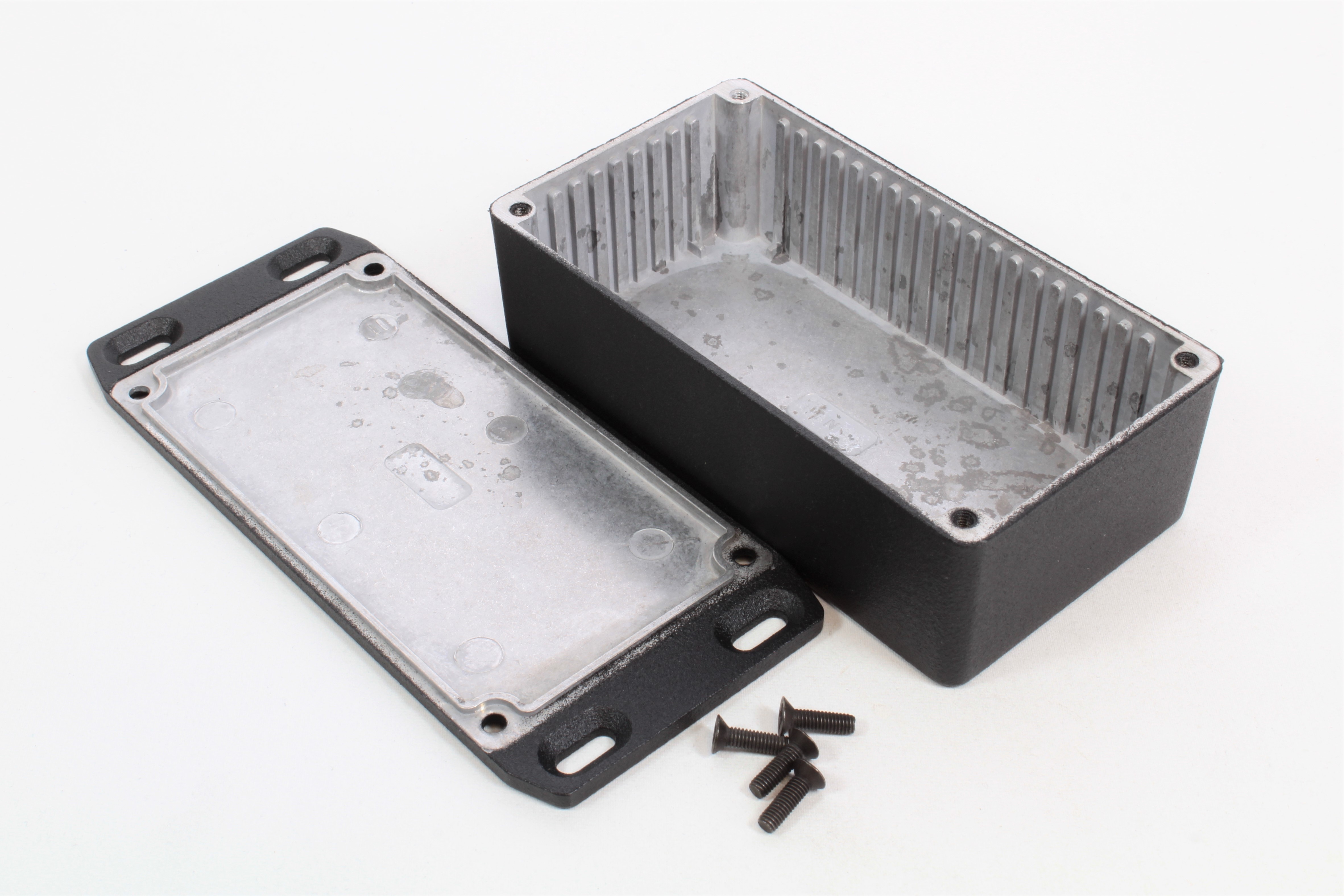 This is Diecast Enclosure with PCB Guides Flang manufactured by Hammond. The manufacturer part number is 1590NFLBK. Flange Options - yes. It is IP rated with ip54. Shielding Options yes. The product 1590, is a highly preferred choice for users. Its external length includes 122 mm. The product's body is nicely designed from die cast aluminium materials. Features 122 x 122 x 40mm external caliber. While its external height is 40 mm. The product is 66 mm wide.