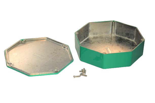 This is Diecast Enclosure Octagon Green manufactured by Hammond. The manufacturer part number is 1590STPCGR. Flange Options - no. It is IP rated with ip54. Shielding Options yes. The product 1590, is a highly preferred choice for users. Its external length includes 133 mm. The product's body is nicely designed from die cast aluminium materials. Features 133 x 133 x 36mm external caliber. While its external height is 36 mm. The product is 133 mm wide.