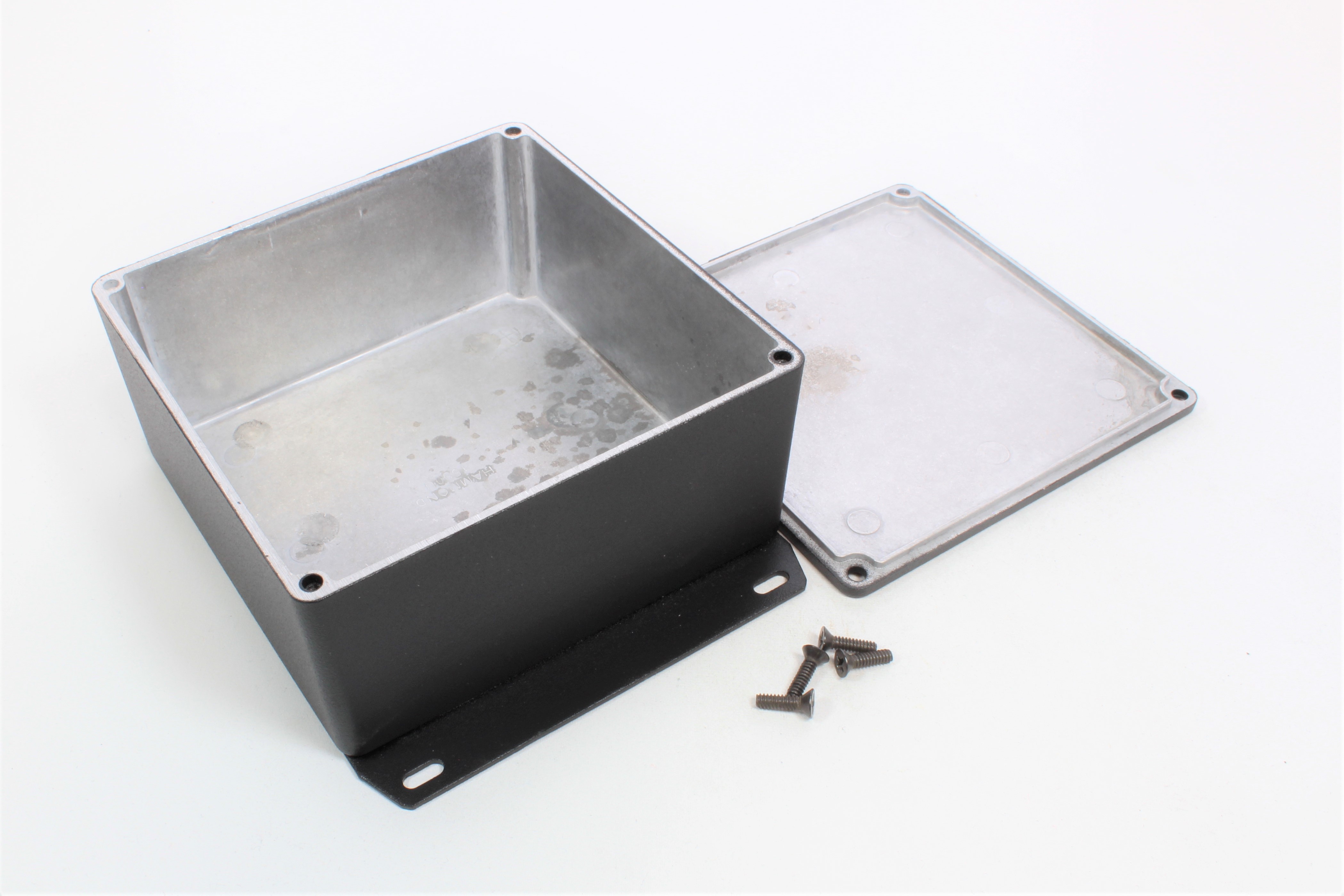 This is Diecast Enclosure Flanged Base manufactured by Hammond. The manufacturer part number is 1590UFBK. Flange Options - yes. It is IP rated with ip54. Shielding Options yes. The product 1590, is a highly preferred choice for users. Its external length includes 120 mm. The product's body is nicely designed from die cast aluminium materials. Features 120 x 120 x 59mm external caliber. While its external height is 59 mm. The product is 120 mm wide.
