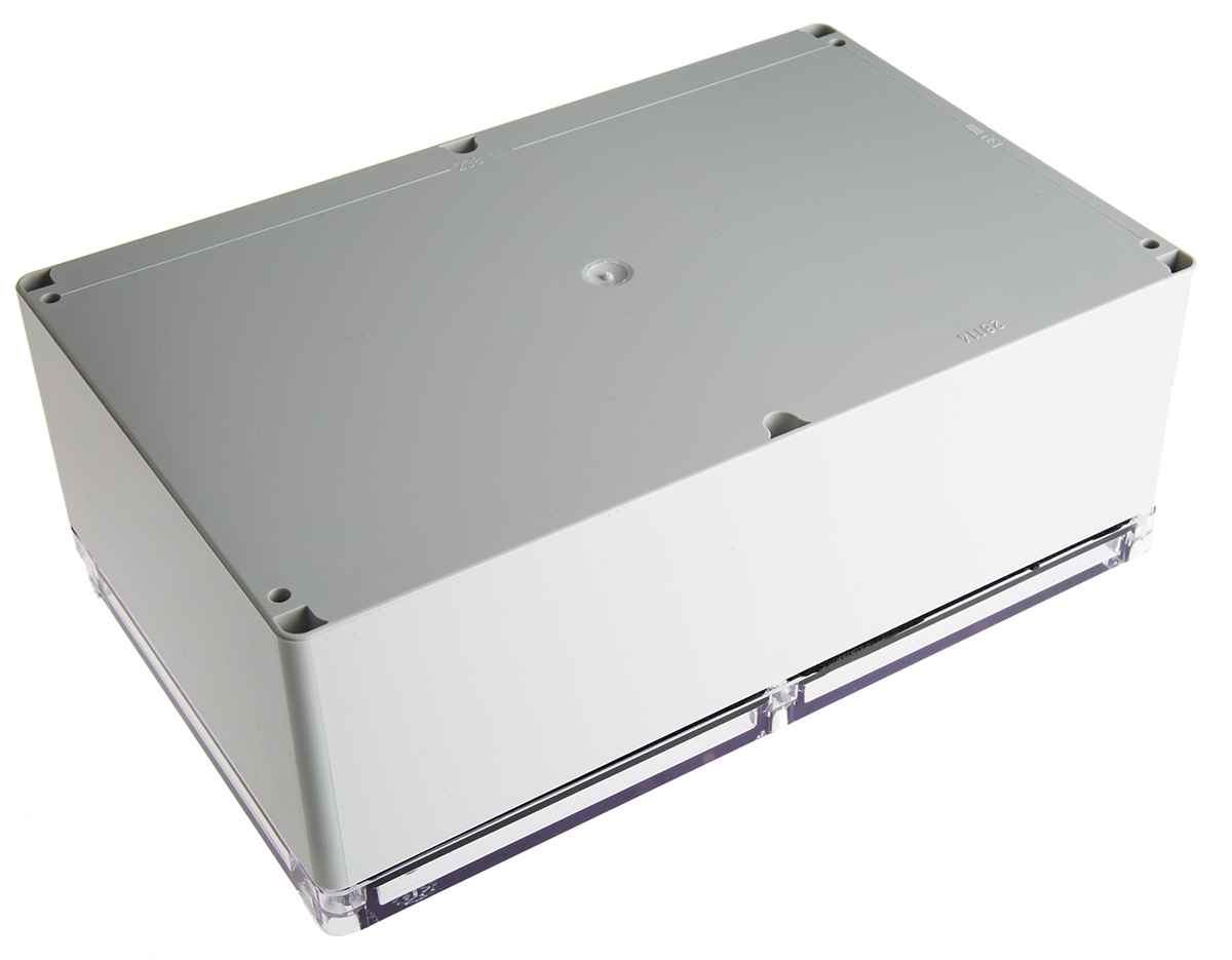 This is Grey Polycarbonate Enclosure IP66 IP67 Transparent Lid 250 x 160 x 90mm manufactured by Fibox. The manufacturer part number is PCT 162509 ENCLOSURE. It is IP rated with ip66, ip67. Shielding Options no. It has a decent grey colour. Its external length includes 250 mm. The product's body is nicely designed from polycarbonate materials. The lid has a classical transparent colour. Features 250 x 160 x 90mm external caliber. While its external height is 90 mm. The product is 160 mm wide.