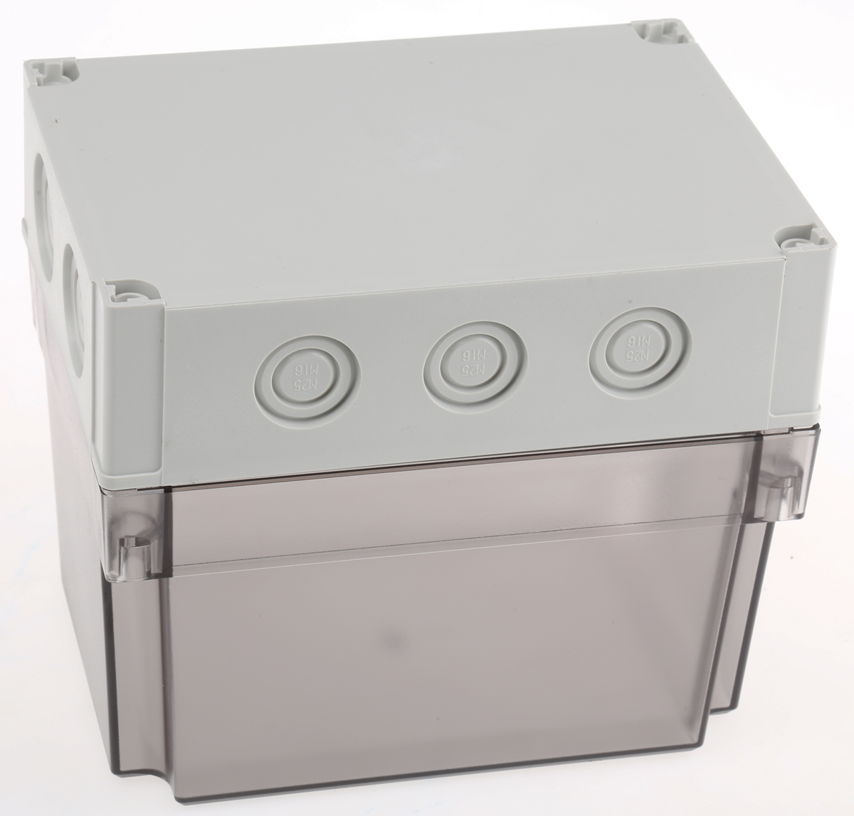 This is Grey Polycarbonate Enclosure IP66 IP67 Clear Lid 180 x 130 x 150mm manufactured by Fibox. The manufacturer part number is PCM 150/150 T ENCLOSURE. It is IP rated with ip66, ip67. Shielding Options no. It has a decent grey colour. Its external length includes 180 mm. The product's body is nicely designed from polycarbonate materials. The lid has a classical clear colour. Features 180 x 130 x 150mm external caliber. While its external height is 150 mm. The product is 130 mm wide.