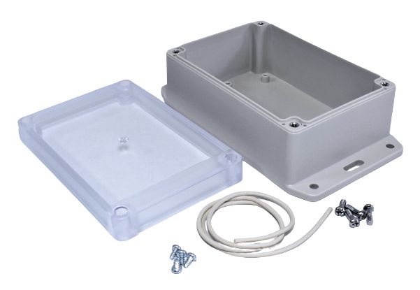 This is RP Series Light Grey ABS General Purpose Enclosure IP65 Flanged Clear Lid 125 x 85 x 55mm manufactured by Hammond. The manufacturer part number is RP1135BFC. Flange Options - yes. It is IP rated with ip65. Its external length includes 125 mm. The product rp, is a highly preferred choice for users. It has a decent light grey colour. The product's body is nicely designed from abs materials. The lid has a classical clear colour. Features 125 x 85 x 55mm external caliber. While its external height is 55 mm. The product is 85 mm wide.