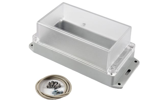 This is RP Series Light Grey Polycarbonate General Purpose Enclosure IP65 Flanged Clear Lid 165 x 85 x 70mm manufactured by Hammond. The manufacturer part number is RP1190BFC. Flange Options - yes. It is IP rated with ip65. Its external length includes 165 mm. The product rp, is a highly preferred choice for users. It has a decent light grey colour. The product's body is nicely designed from polycarbonate materials. The lid has a classical clear colour. While its external height is 70 mm. The product is 85 mm wide. Features 165 x 85 x 70mm external caliber.