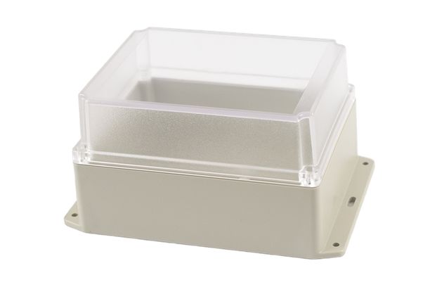 This is RP Series Light Grey ABS General Purpose Enclosure IP65 Flanged Clear Lid 186 x 146 x 110mm manufactured by Hammond. The manufacturer part number is RP1385BFC. Flange Options - yes. It is IP rated with ip65. Its external length includes 186 mm. The product rp, is a highly preferred choice for users. It has a decent light grey colour. The product's body is nicely designed from abs materials. The lid has a classical clear colour. Features 186 x 146 x 110mm external caliber. While its external height is 110 mm. The product is 146 mm wide.