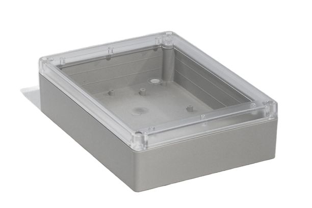 This is RP Series Light Grey ABS General Purpose Enclosure IP65 Clear Lid 220 x 165 x 60mm manufactured by Hammond. The manufacturer part number is RP1455C. Flange Options - no. It is IP rated with ip65. Its external length includes 220 mm. The product rp, is a highly preferred choice for users. It has a decent light grey colour. The product's body is nicely designed from abs materials. The lid has a classical clear colour. Features 220 x 165 x 60mm external caliber. While its external height is 60 mm. The product is 165 mm wide.