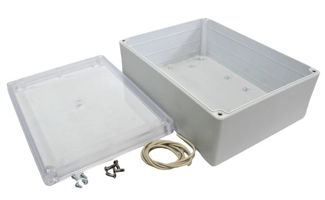 This is RP Series Light Grey Polycarbonate General Purpose Enclosure IP65 Clear Lid 220 x 165 x 85mm manufactured by Hammond. The manufacturer part number is RP1460C. Flange Options - no. It is IP rated with ip65. Its external length includes 220 mm. The product rp, is a highly preferred choice for users. It has a decent light grey colour. The product's body is nicely designed from polycarbonate materials. The lid has a classical clear colour. Features 220 x 165 x 85mm external caliber. While its external height is 85 mm. The product is 165 mm wide.