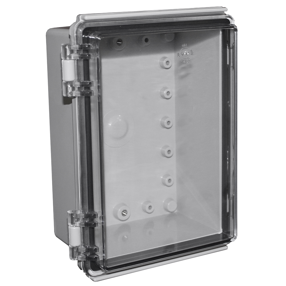 The CAMDENBOSS Enclosure is a X8 Series waterproof hinged door enclosure. The IP67 enclosure ABS with a clear lid featuring a hinged lid with latches. This mechanically strong enclosure may provide the ideal alarm panel housing perfect for smart home networks. The gasket moulded into the enclosure lid. Moulded in high quality ABS IK08 impact tested Clear lid option available Brass inserts in the base Key lock latch accessories available