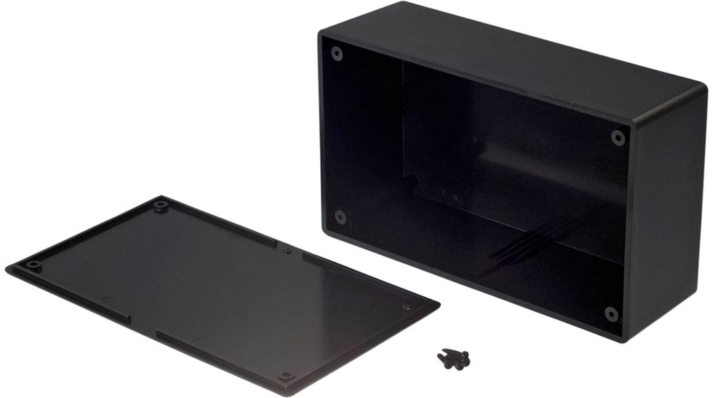 This is Plastic Enclosure 90x151x53.2mm Black AB manufactured by RND. The manufacturer part number is RND 455-00097. Its external length includes 151mm. While its external height is 53.2 mm. It has a decent black colour. The product is 90 mm wide.