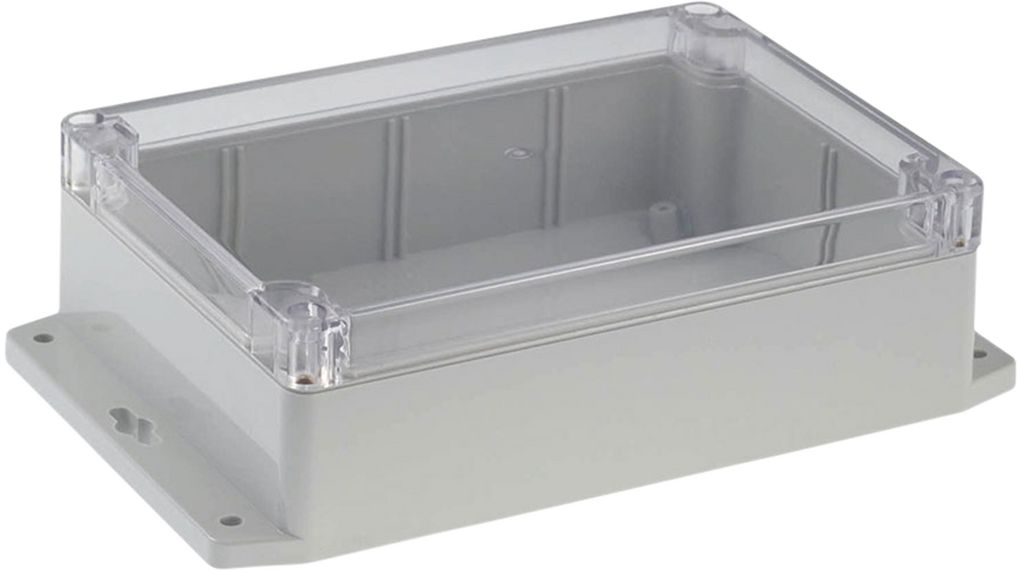 This is 455 Series Light Grey Polycarbonate General Purpose Enclosure IP65 Flanged Transparent Lid 171x121x55mm manufactured by RND. The manufacturer part number is RND 455-00242. Flange Options - yes. It is IP rated with ip65. Its external length includes 171 mm. The product rnd 455, is a highly preferred choice for users. It has a decent light grey colour. The product's body is nicely designed from polycarbonate materials. The lid has a classical transparent colour. Features 171x121x55mm external caliber. While its external height is 55 mm. The product is 121 mm wide.